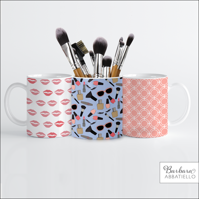 In Stitches Inspired by fashion, In Stitches captures a diamond pattern found in quilted handbags. Kiss & Makeup Mugs